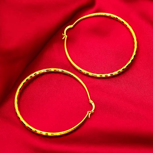 • Gold Hoop Earrings for Women, 24K Gold, AU999 | Smooth round Hoops with Minimalist Elegance, Timeless Sophistication.