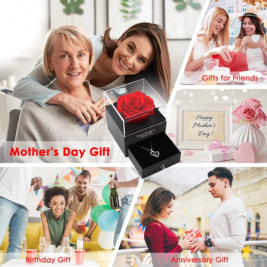 Preserved Red Real Rose with Heart I Love You Necklace,Eternal Flowers Rose Birthday Gifts for Women Her Mom Wife Girlfriend Grandma on Valentines Mothers Day Christmas Anniversary Romant